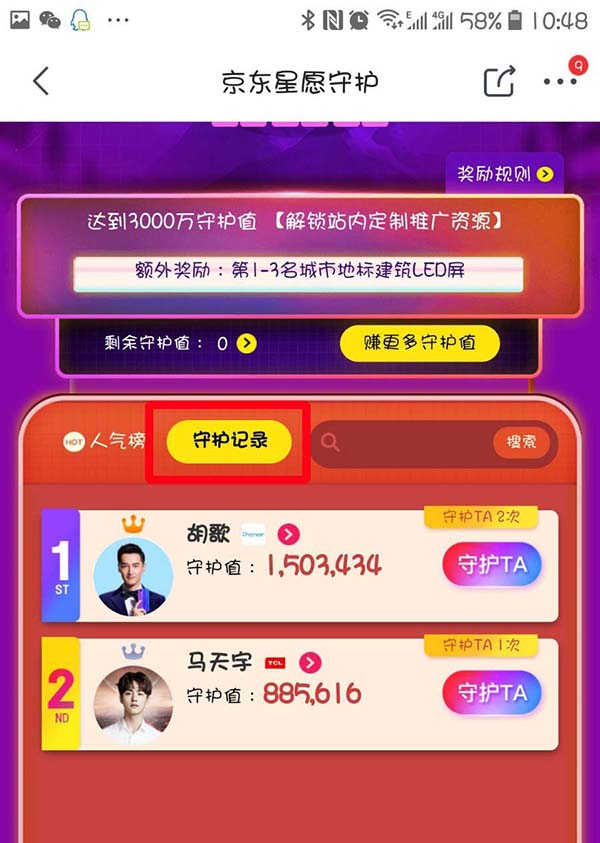 5、如果我们想查看守护记录,直接点击【守护记录】即可