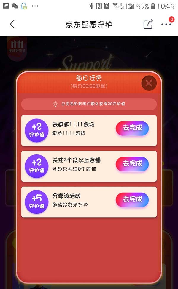 以上就是京东双十一参与星愿守护的教程,希望大家喜欢,请继续关注脚本之家。