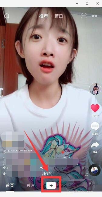 1、打开抖音,点击录视频的加号。