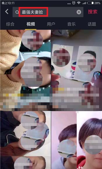 2、在搜索界面中直接搜索【最强夫妻脸】,然后在视频下方找一个视频打开。