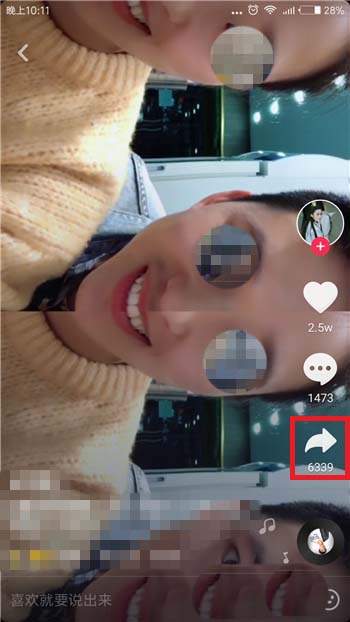 3、打开视频在播放界面中找到右侧的【转发】选项并点击。