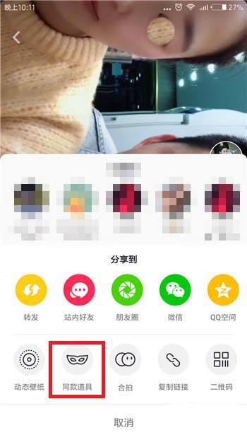 4、接下来在转发界面中就可以看到【同款道具】选项了,点击使用同款道具。