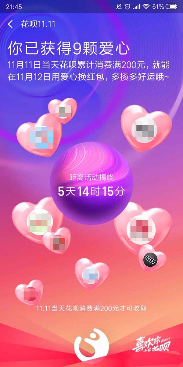 支付双大牌帮你还花呗收爱心活动就是,11当天用花呗付款满200元就可以使用爱心红包帮你还,该怎么参与这个活动并收货爱心呢?下面我们就来看看详细的教程。