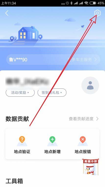 3、这时就会打开高德地图的个人中心页面,点击右上角的“设置”按钮。
