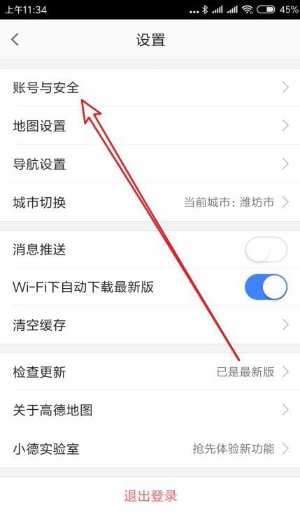 4、在打开的高德地图的设置页面,点击“账号与安全”的菜单项。
