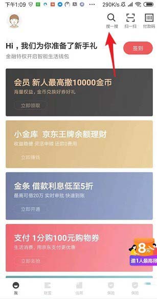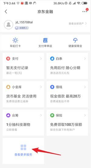 在【我的】页面的“金融服务”中点击【查看更多】;