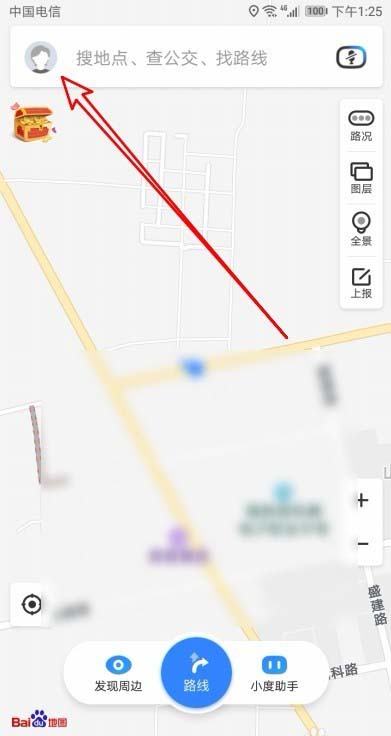 2、在打开的百度地图软件主界面,我们点击左上角的“个人头像”图标。