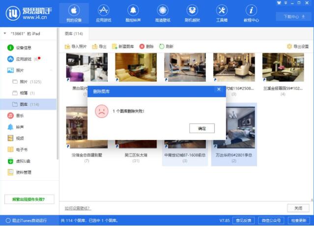 最近有小伙伴反映说,将iOS设备连接爱思助手、进行图库删除,结果却失败了。一般来说,只有图库数据库出问题了、才会遇到这种情况,本文将介绍相关解决方法。