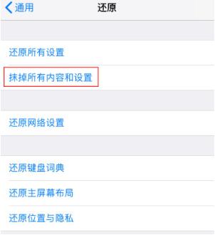 方法三:进入手机设置——通用——还原——抹除所有内容和设置,这样也可以解决图库不能删除的问题。(抹除数据、恢复出厂以后,所有内容都没了,请慎用)