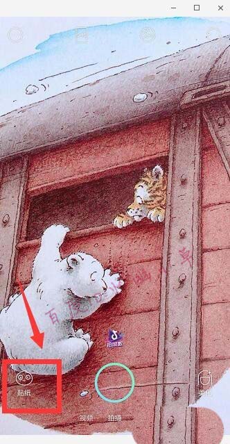 3、在最新或者热门分类里找到“花瓣妆”贴纸,如图。