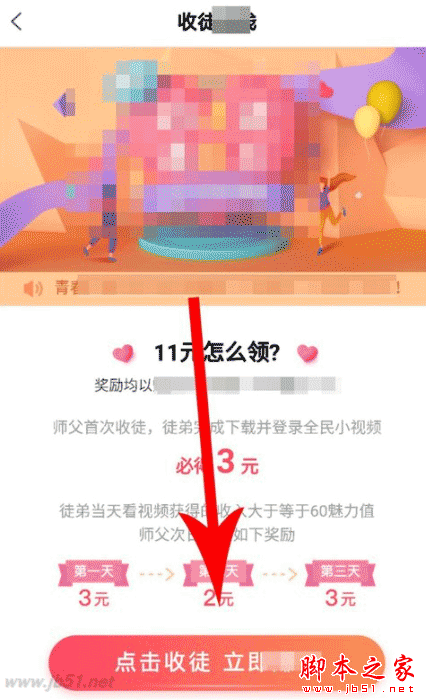 3、另外大家通过左上角的“赚钱”按钮,还可以通过收徒的方式来赚钱,每收一个徒弟必定可以得到3元的收益,徒弟们观看视频的时候,也能够获得魅力值收益哦!