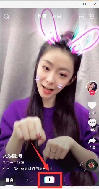 1、登录抖音账号后点击“+”。