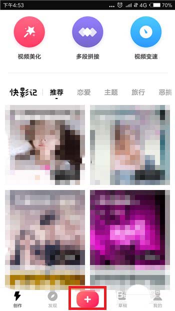 1、打开手机中的快剪辑,在底部找到【+】选项并点击。