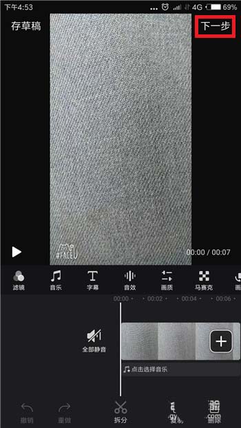 5、点击后打开的是快剪辑的编辑界面,这里小编就不介绍编辑了,直接点击【下一步】。