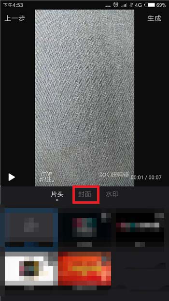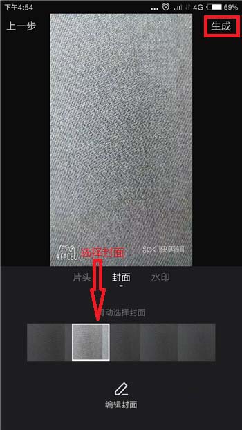 7、打开封面设置界面后拖动下方的进度条,这样可以任意设置视频的一部分为封面,设置好后点击【生成】即可。