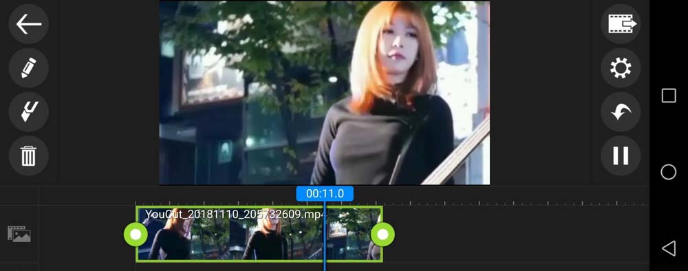 2、选择视频轨道上的视频,在左边会出现铅笔标志。