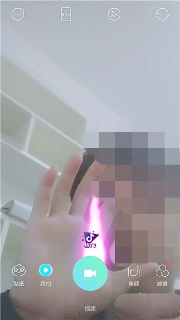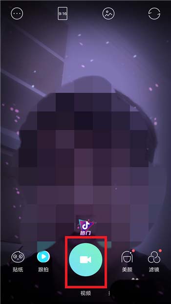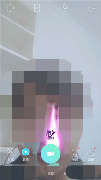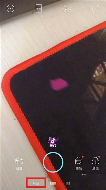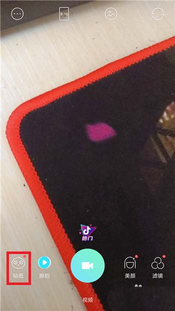2、切换到视频拍摄界面后就可以点击左下角的【贴纸】功能。