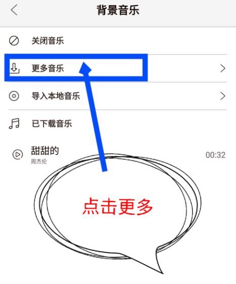 进入背景音乐界面,点击“更多音乐”,如图,