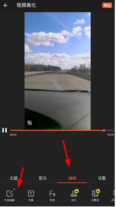 进入视频编辑页面,点击下方的【编辑】功能,选择【片段编辑】,