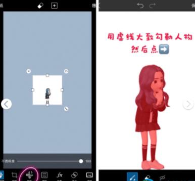 选择一张壁纸或头像背景 点添加照片 选择刚刚保存在相册的emoji人物 再点击剪影✂️用虚线大致勾勒人物 打勾后软件会自动识别抠图