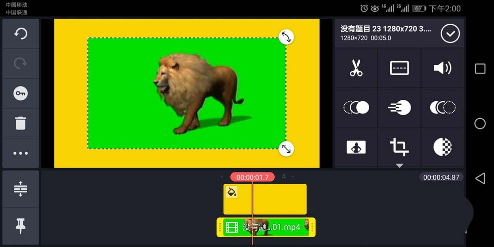 1、首先启动手机上的巧影软件,导入一张绿色背景素材。