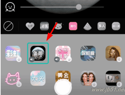 大家可以去下载B612咔叽软件,打开软件进入【贴纸】功能,然后在【流行】中找到鱼眼就可以拍摄了。