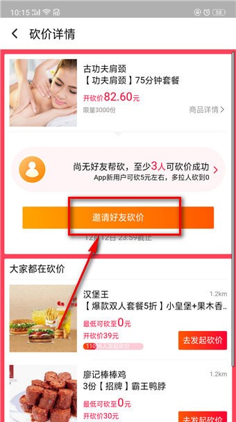 5.接着点击【邀请好友砍价】我们可以将砍价邀请发布到各大社交软件中