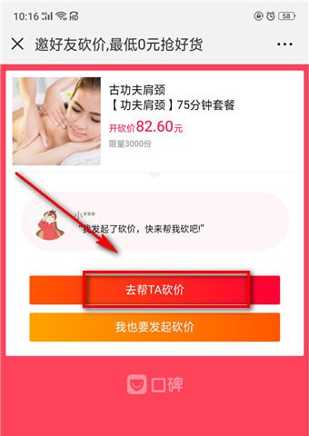 大家都知道,口碑双十二吃喝玩乐节发起了0元抢好货邀好友砍价的活动,在0元抢好货专区里可以看到很多商家提供的优惠商品,所有商品都能发起参与0元砍价,还不知道口碑怎么帮别人砍价?这里提供口碑怎么砍价以及口碑在哪里帮别人砍价的教程,感兴趣的朋友千万不要错过了。