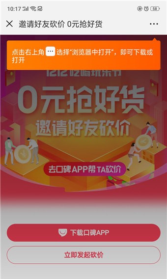 3.这里我们可以看到如果你没有口碑app是需要先下载口碑app的,下载口碑即可帮好友砍价