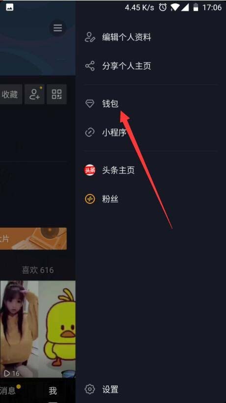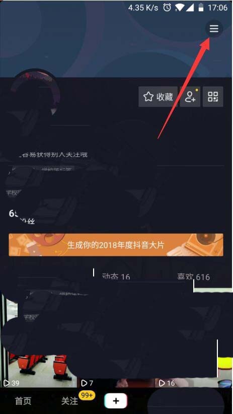 1、首先打开抖音,然后在抖音的右下角找到我,然后点击我,在我的首页中可以看到右上角的三标记,点击该标记