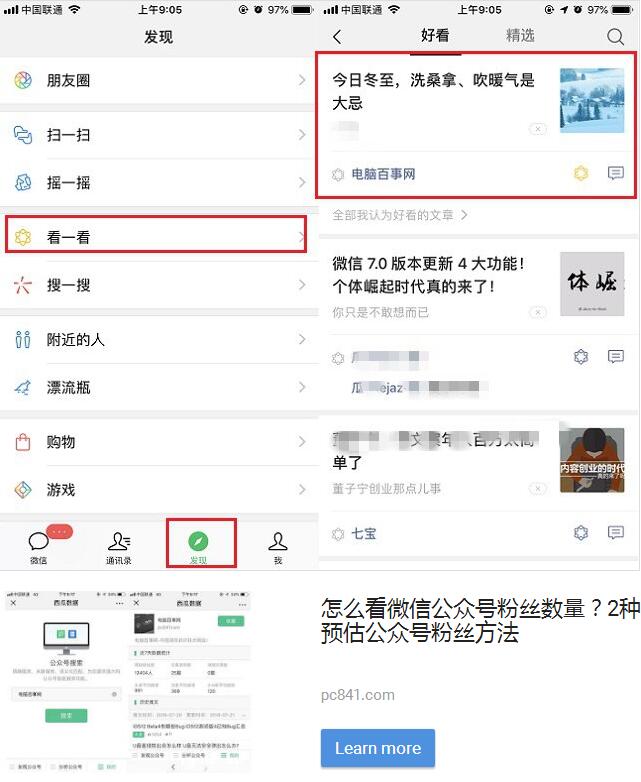 好看是微信7.0.0新版中加入的一个新功能,主要方便与将自己喜欢的订阅号文章,分享给朋友观看。