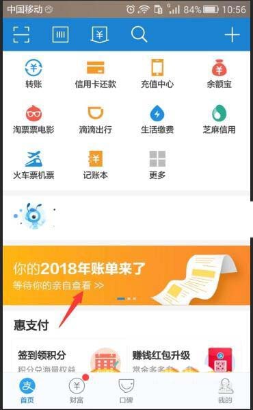 1、我们先打开支付宝,点击图示的位置进入2018年账单,如图所示;