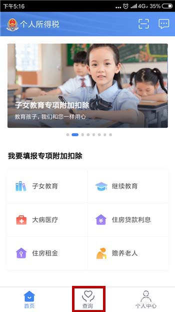 2、在个人所得税的首页里可以看到底部的【查询】,点击【查询】。