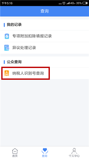 3、接下来在查询界面中点击【纳税人识别号查询】。