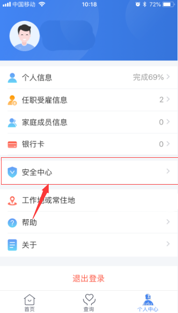 2、进入到了的个人中心的界面当中,点击安全中心的选项。