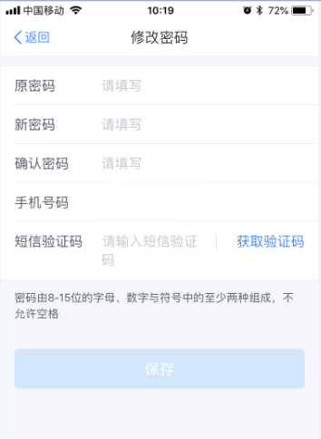 4、进入到了的修改密码界面中,输入上修改的相关的信息。