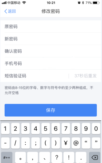 5、在修改密码的信息输入完成之后,点击保存的按钮。