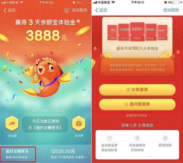 余利宝体验金其实就是两个活动,一个是【年年有余】玩游戏赚体验金活动,另外一个是【邀请好友赚更多体验金】,支付宝用户可以通过这2种方式来薅羊毛。