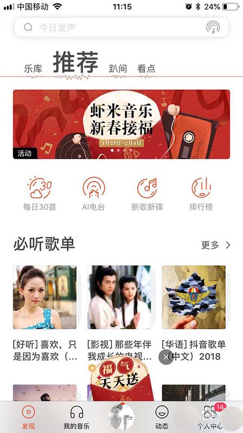 虾米音乐app怎么使用听歌识曲查找歌曲?