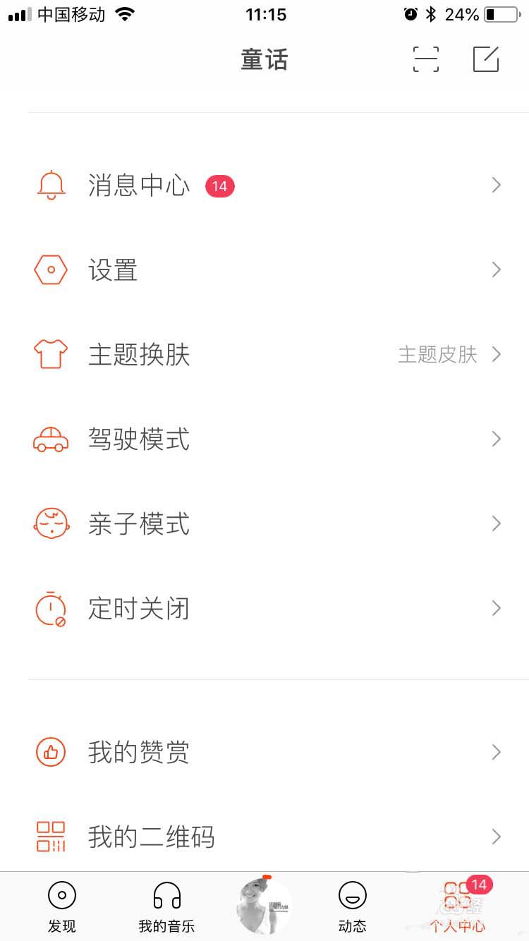 3、进入到了的个人中心的界面当中,点击亲子模式的选项。