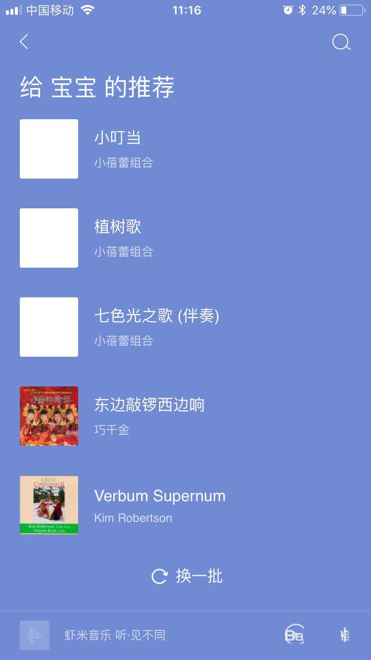 4、进入到了的亲子模式界面当中,向下滑动查看的亲子的音乐