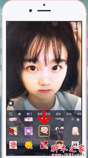 在热门选项中,找到这个小人图标,点击即可使用,对着镜头微笑时,人物的头部就会变大,非常有意思哦。