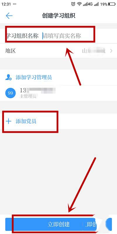 输入自己要创建组织的名称,单击“立即创建”即可完成操作。你就可以等待上级组织批准了。“添加党员”可以现在添加,也可以等批准组织建立后再行添加。