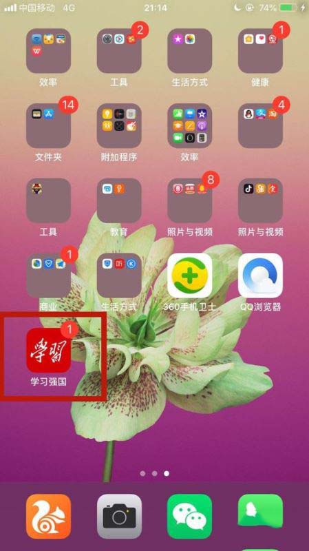 首先在我们的手机桌面上找到学习强国,并点击它,如下图所示。