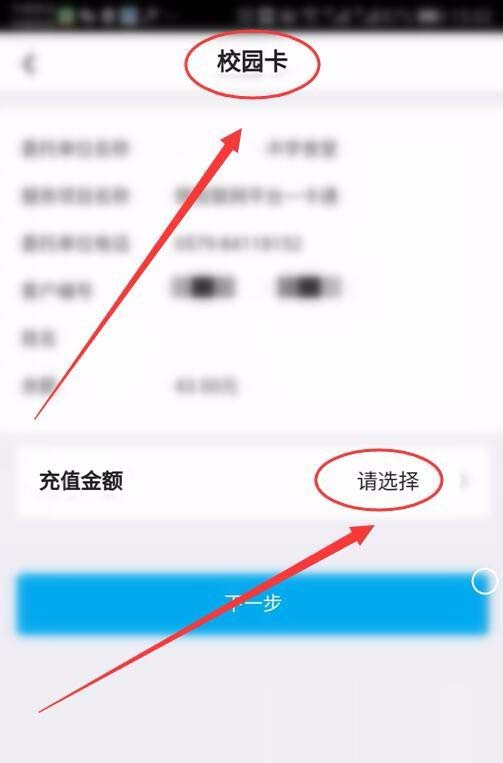 9、校园卡窗口中,核对学生信息是否正确后,点击选择充值金额。