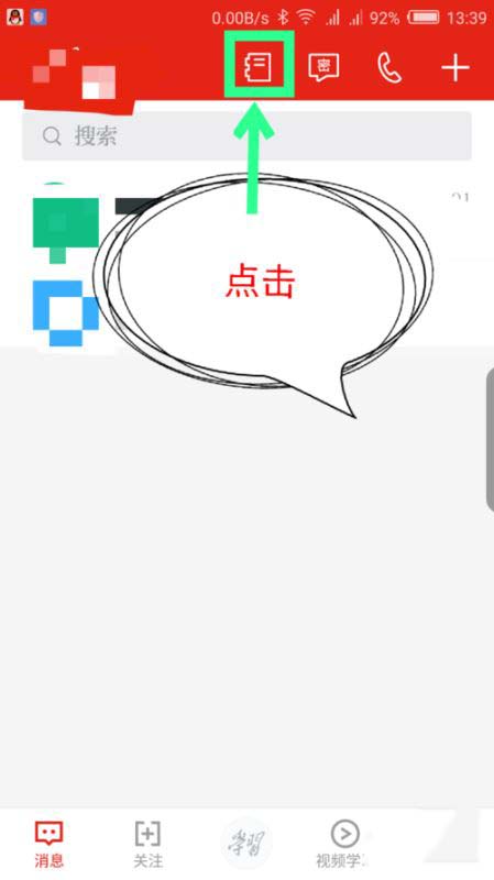 学习强国的组织群里面可以设置显示水印,在软件的消息主界面,点击顶部的通讯录选项。如图所示