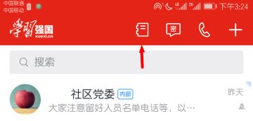 登录学习强国之后,在顶部找到第一个按钮,像小册子一样的【通讯录】。