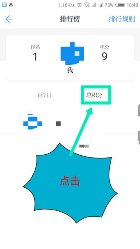 也可以查看总积分的排行榜,点击近七日右边的总积分,打开积分排行榜。如图所示