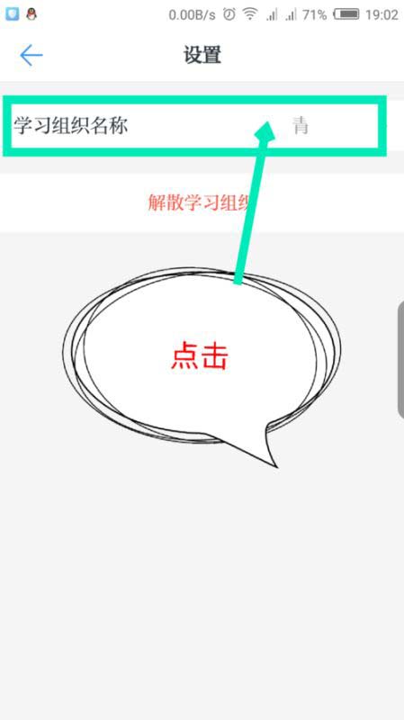 在打开的设置界面,只有一个学习组织名称选项,点击一下现在的名称。如图所示