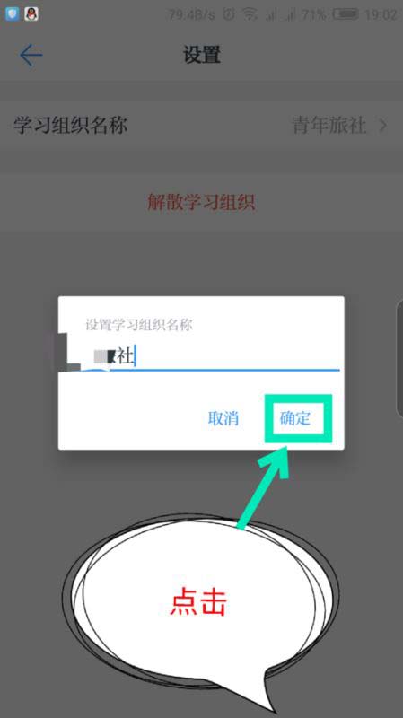 点击组织名称后,会弹出一个设置学习组织名称的窗口,输入一个新的名称,点击确定。如图所示